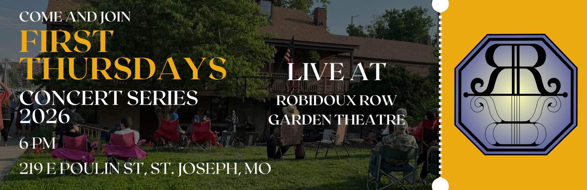 Robidoux Row’s First Thursdays Concert Series is the place to be during the summer months! The Row hosts a garden party on the first Thursday of June, July, August, September, and October that features local music talent for a 2-hour free concert. In addition, you can usually find the Lucky Thai food truck at our party along with River Bluff Brewing. On past First Thursdays, we have hosted talents such as Jennifer George, Jason Riley, Kristin and Lucy Hamilton, and The reAgents. You may even get to hear Joseph Robidoux’s 1840s era fiddle play again in the same historic courtyard it once graced. Come out for First Thursdays and attend a true St. Joseph staple, a musical garden party (with beer, of course)!